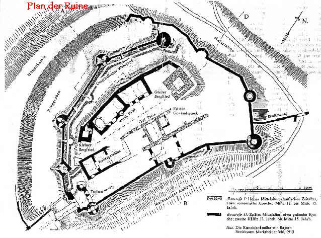 Da nun nach urkundlichen Quellen bei dem Deutschen Orden seit dem zweiten Drittel des 14. Jahrhunderts sich der Gebrauch der Pulverwaffen einbürgert und zu Beginn des 15. einen ungeheuren Aufschwung nimmt, können die für Pulverwaffen eingerichteten Verteidigungsanlagen zu Prozelten auf Anfang des 15. Jahrhunderts datiert werden.